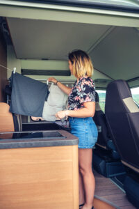 Keep your van feeling fresh and inviting by allowing air to circulate regularly. Open windows and doors whenever possible to let in fresh air and natural light. Consider using natural air fresheners like essential oil diffusers or sachets of dried herbs to add a pleasant aroma to your living space.