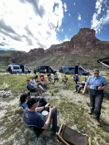 Tuesday evening provided a delightful interlude, with Carrie Craft, a connoisseur in the wine industry, curating a memorable tasting experience for the group. Against the backdrop of the wilderness, attendees savored exquisite wine pairings, including the unexpected delight of Kramer Vineyard’s aged Blanc de Blanc Sparkling paired with Kettle Corn. Amidst laughter and camaraderie, participants shared tales of their own van life experiences, further strengthening the bonds formed during the journey.