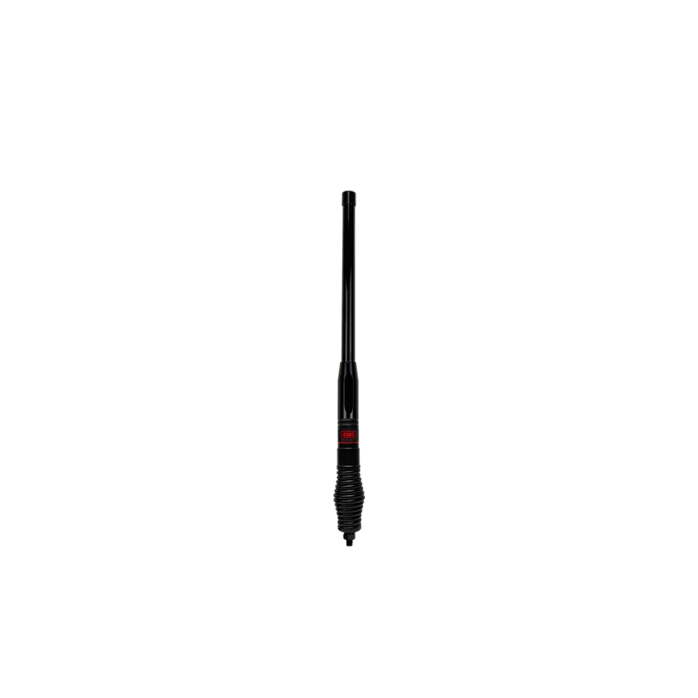 The AE4704B-U is a compact, heavy-duty GMRS fiberglass radome antenna built for off-road and overland use. With a rugged spring base, interchangeable whip, and a ground-independent design, it delivers 2.1dBi gain for reliable comms in mountainous or urban terrain.