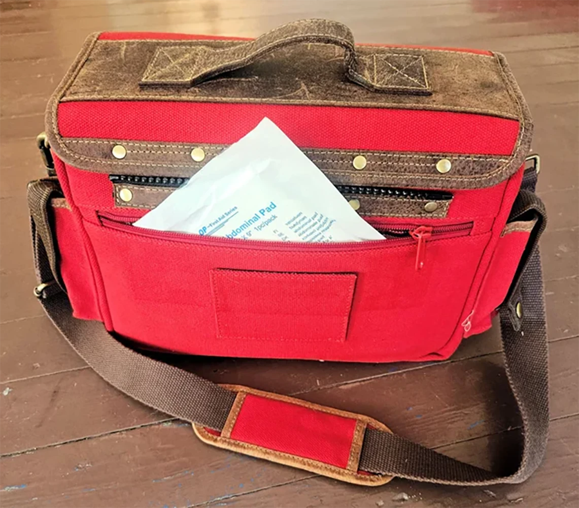 • Red First Aid Bag: Features larger interior pockets designed specifically for organizing medical supplies.