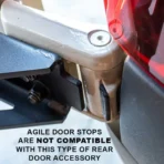 - Door stops are designed around Agile Offroad products, operation may vary with other door-mounted accessories