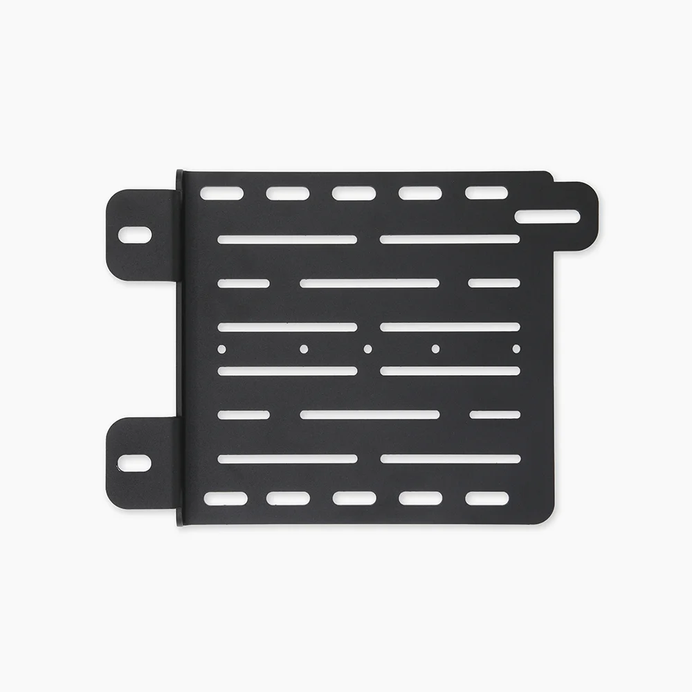 A low-profile accessory mounting solution designed to install behind the rear seat of the Ford Ranger Raptor, providing a secure and organized mounting surface for electronics and small accessories.