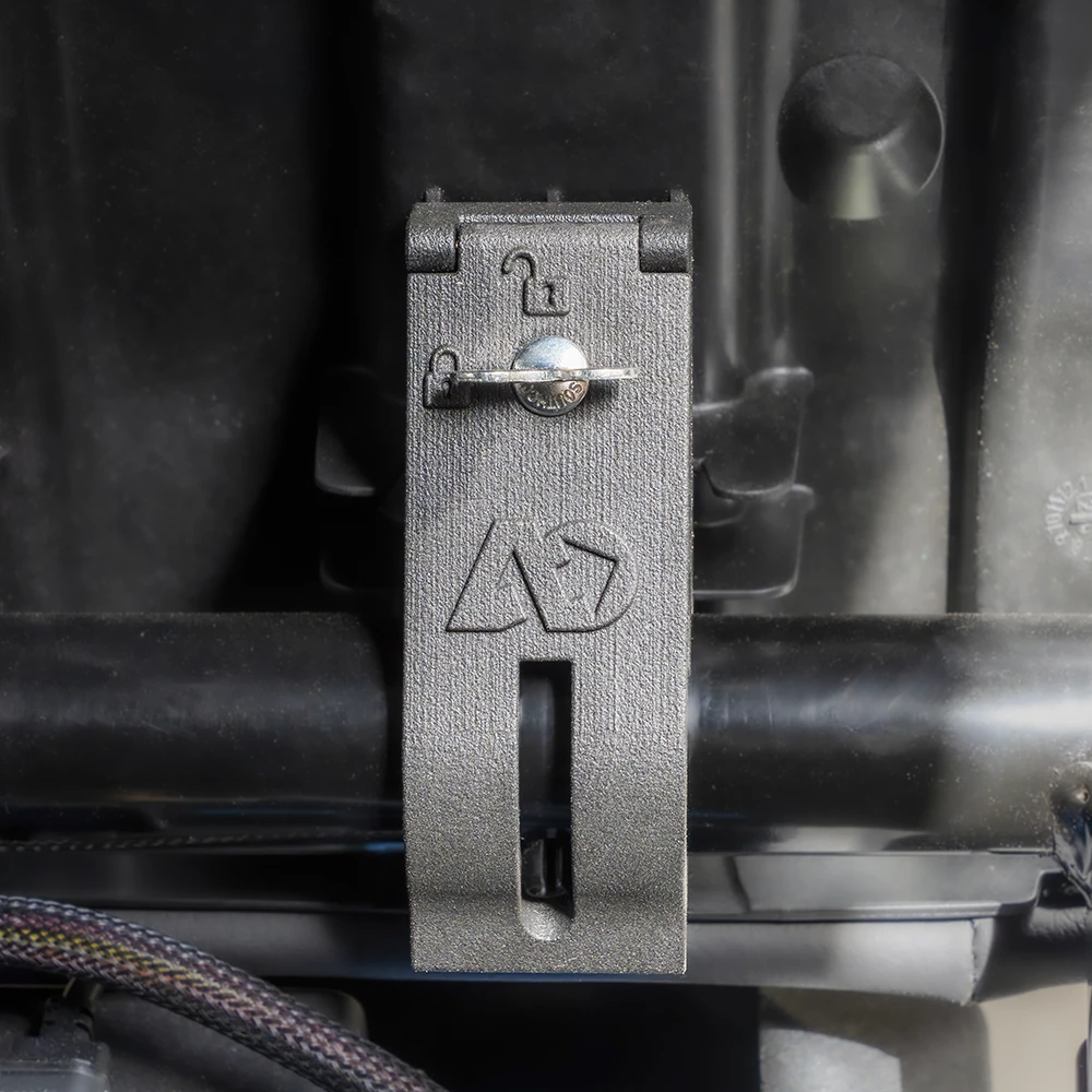 Simplify rear seat removal in your Grenadier with this custom quick disconnect bracket. Designed to function like the OE brackets but with added quick disconnect capability, it allows for fast, tool-free seat removal when needed.
