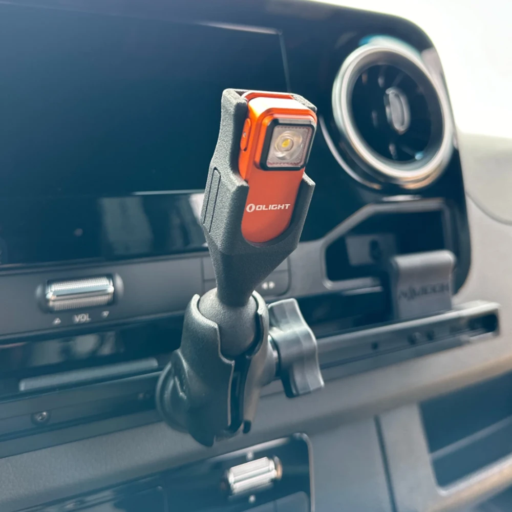 The Navilight is the first purpose-built solution for integrating the Olight Oclip into your van’s cockpit, making it an essential tool for van lifers, weekend warriors, and full-time travelers alike.